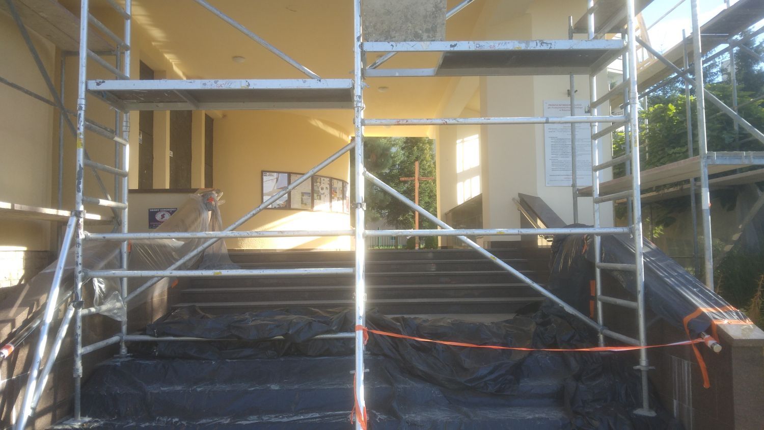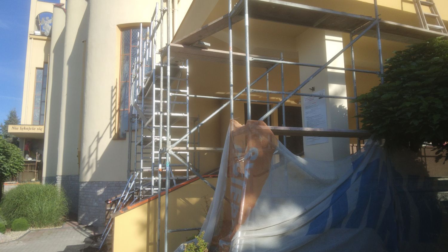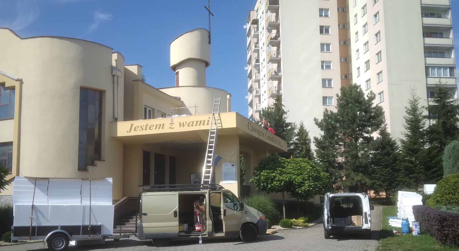 Od sierpnia 2022 r. trwały prace remontowe przy naszej świątyni. Prace wykonywane były przez firmy Rzym-Dach oraz Tom-Haus i obejmowały centralne zadaszenie, taras nad głównym wejściem do kościoła (skuto tynk, nałożono nowy, pomalowano i odtworzono napisy), udrożnienie kanałów odprowadzania wody opadowej. Dokonano oczyszczenia powierzchni, zabezpieczono ją właściwym preparatem, wyrównano odpowiednio cały poziom tarasu, a następnie wykonano właściwe spady od ścian budynku i otaczającego cały taras muru. Wykonano również nowe zabezpieczenie okalających taras murów obróbką blacharską. Wykonano ogólne prace budowlano-remontowe – obejmujące wykonanie odpływów, przyłączy kanalizacji, wymiana rur, tynków, wykonanie zabudowań, remont balustrady, prace na dachu przy figurze anioła, przy suficie nad wizerunkiem św. Jana Pawła II, przy narożu kościoła od strony zachodniej, remont zadaszenia przed wejściem do zakrystii i okrągłego okna przy tym wejściu. Prace remontowe nie dotyczyły tylko zewnętrznej strony świątyni, ale wykonano prace wewnątrz kościoła dotyczące ścian przy wejściu na chór, przy kaplicy Matki Bożej polegające na skuwaniu tynków, osuszaniu, odgrzybianiu i odpowiednim ich zabezpieczeniu. Nałożono nowy tynk i pomalowano.Na planowane prace remontowe zostało zebrane przez radę parafialna w miesiącach od lipca do października 2021 roku oraz wpłynęło na konto łącznie 83 873 zł. W kopertach, jako indywidualne wpłaty zebrano łącznie 3200 zł. W bieżącym roku 2022 w miesiącach od maja do września zebrano 19 960 zł, co dało nam razem kwotę 107 033 zł. Za wykonane prace przez dwie firmy koszt wyniósł 119 630 złotych. Do ostatecznego wyrównania brakuje zatem 12 597 zł. Oprócz tego do zapłaty pozostanie jeszcze zadaszenie nad wejściem do zakrystii. Dziękujemy właścicielom i wszystkim pracownikom tych firm, którzy wykonali swoją pracę w naprawdę promocyjnej cenie, ale także szybko i sumiennie. Dziękujemy wszystkim, którzy modlitwą i ofiarą wsparli ten cel dla dobra naszej wspólnoty, ale przede wszystkim na chwałę Pana Boga. Niech Bóg błogosławi Wam wszystkim.W międzyczasie wymieniliśmy silnik z mechanizmami w średnim dzwonie i mechanizm w dużym dzwonie. Koszt remontów dzwonów wyniósł 6500 zł.Zdjęcia z remontów, fot. RRzKonto bankowe parafii PKO BP I o RzeszówWpłaty na potrzeby parafii