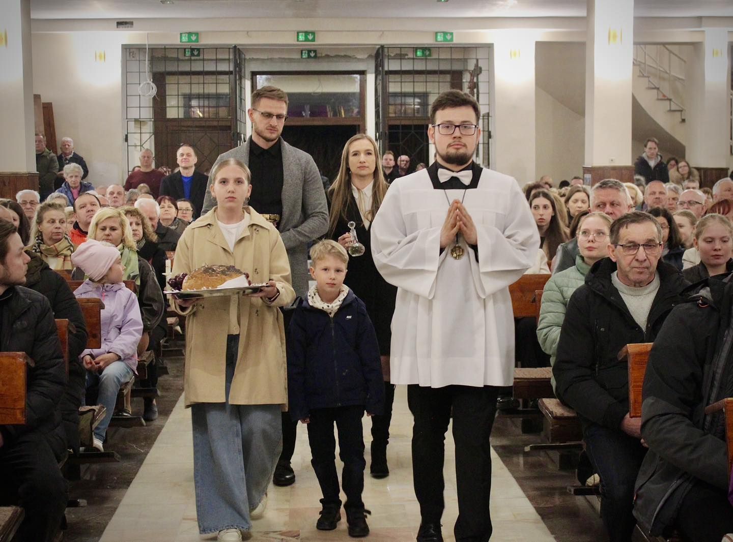 W czasie ferii świątecznych, zimowych i wakacji oraz wizyty duszpasterskiej od 7:00 do 8:00.